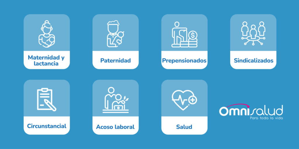 • Maternidad y lactancia: Este grupo incluye a las trabajadoras desde  el periodo de gestación hasta la finalización de la licencia de maternidad. En cuanto al tiempo de lactancia, la ley 2306 de 2023 introdujo normativas para promover la protección de la lactancia saludable y la primera infancia, actualizando el artículo 238 del Código Sustantivo del Trabajo que establece los permisos de esta.